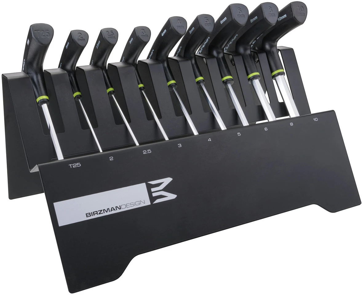 Edel, schick und dennoch hoch funktionell – die Halterung aus Stahl bietet eine praktische Aufbewahrungsmöglichkeit, bestehend aus bis zu 8 Innensechskantschlüsseln: 2, 2.5, 3, 4, 5, 6, 8, 10 mm & T25 Torxschlüssel. Es wurde designt und konzipiert, um ein einfaches und praktisches Auffinden des richtigen Innensechskantschlüssels zu ermöglichen.