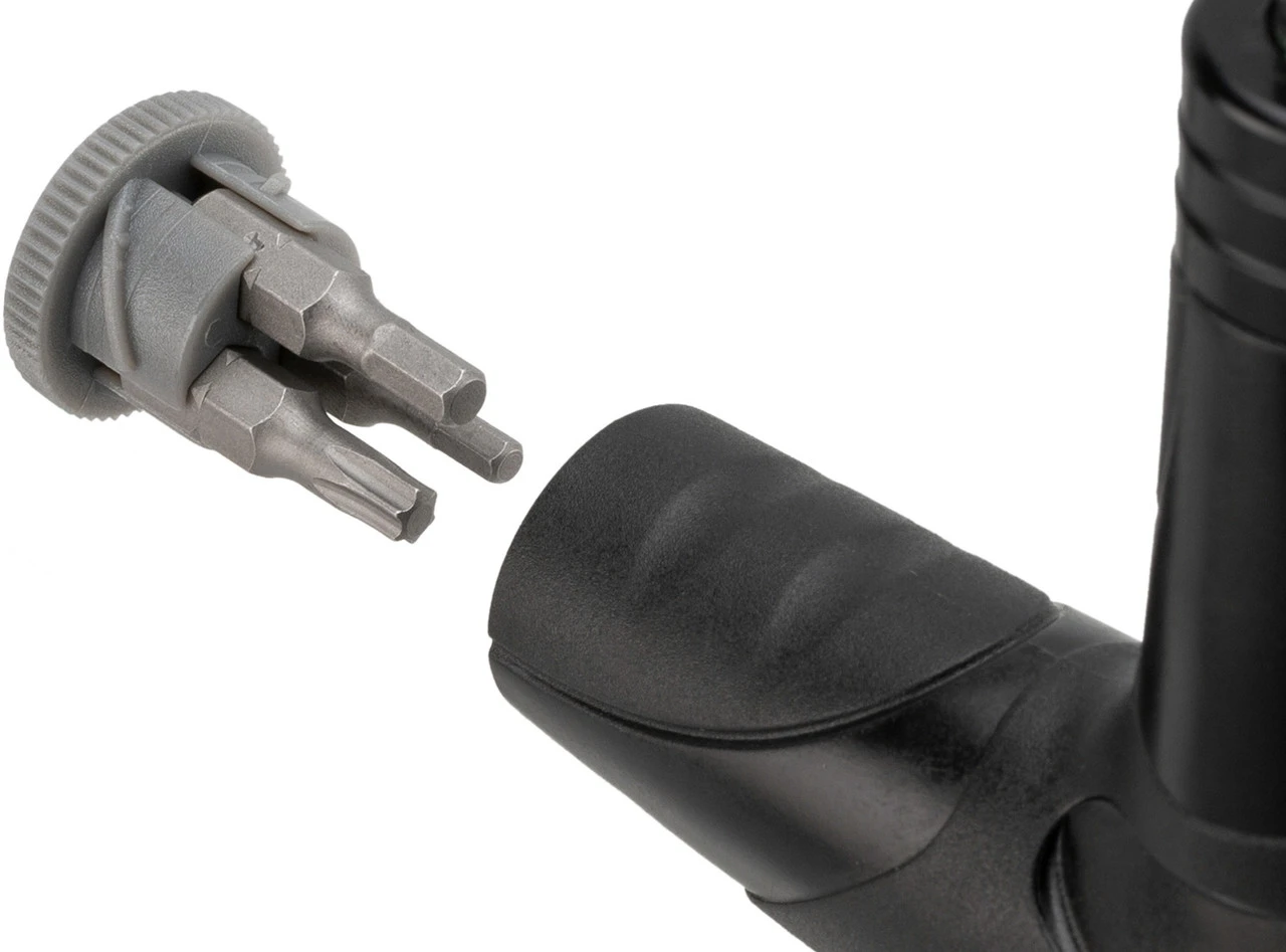 Dieses 3min19sec Drehmomentschlüssel-Set besteht aus einem Drehmomentschlüssel mit einem Einstellbereich von 4 bis 6 Nm sowie vier Aufsätzen von ParkTool. Der Drehmomentschlüssel ist ein praktischer Helfer bei Montagearbeiten in der Werkstatt. Du musst nur das Ziel-Drehmoment einstellen und den Schlüssel bis zum ersten Knacken anziehen, dann ist das passende Drehmoment erreicht. Durch die Ausführung als T-Griff mit einer integrierten Aufbewahrung für die mitgelieferten Bits ist dieses Werkzeug ideal geeignet für die schnelle Montage von Bauteilen wie Vorbauten, Lenker und Bremsen.