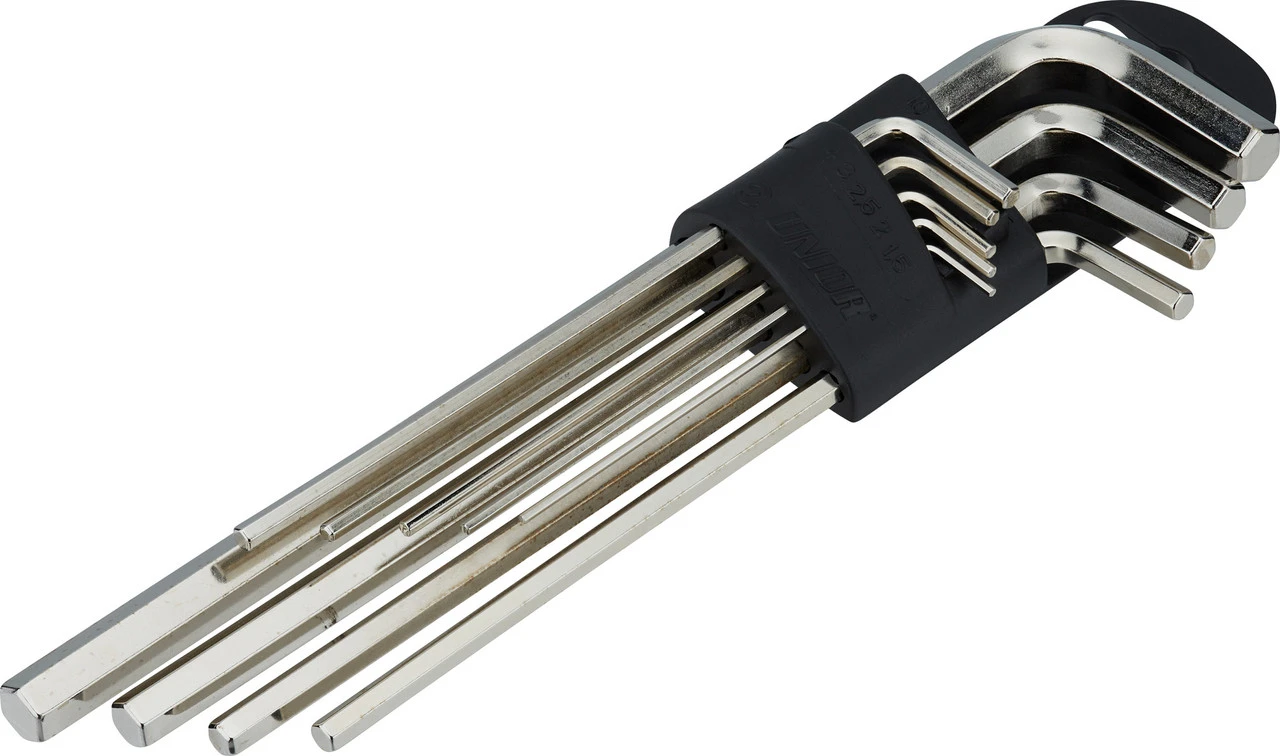 Lieferumfang:1 x Innensechskant-Schlüsselset Unior Bike Tools 220/3LPH lang, 9-teilig