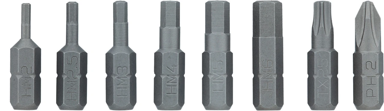 1 x Bit-Schlüssel ParkTool1 x Bit-Halter ParkTool1 x Innensechskant-Bit 2 mm1 x Innensechskant-Bit 2,5 mm1 x Innensechskant-Bit 3 mm1 x Innensechskant-Bit 4 mm1 x Innensechskant-Bit 5 mm1 x Innensechskant-Bit 6 mm1 x Torx-Bit T251 x Kreuzschlitz-Bit Phillips #2