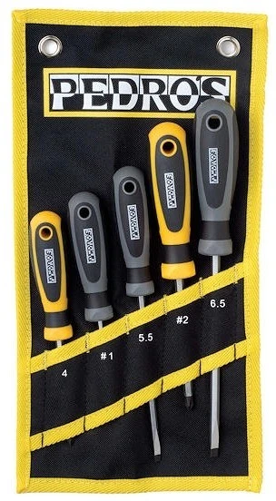 Mit dem Schraubendreher Set 2.0 von Pedros bekommst Du die meisten Kreuz- und Schlitzschrauben bewegt. Die hochwertige Ausführung des Pedros Sets sorgt für zuverlässigen und langandauernden Spaß beim Schrauben an Deinem Fahrrad.