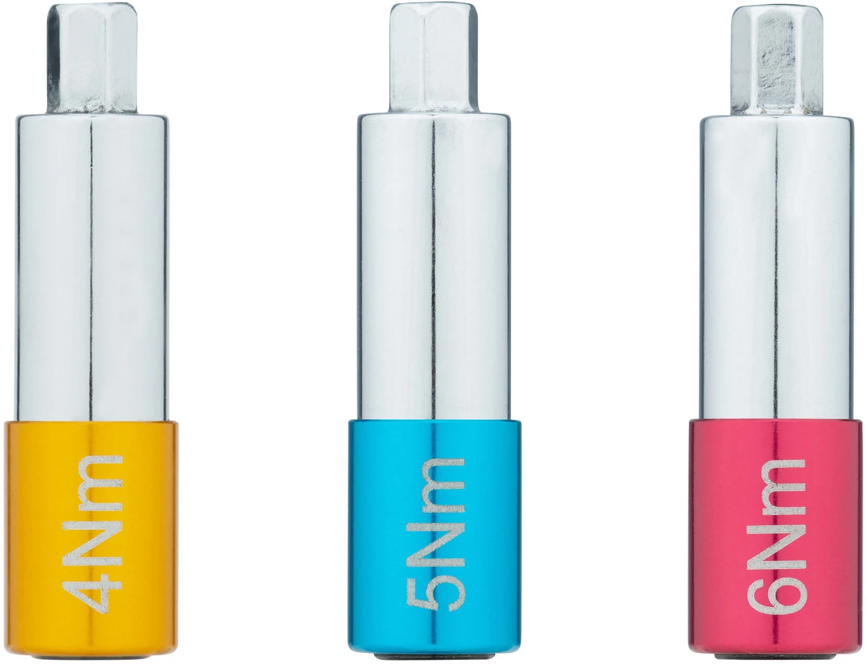 Der praktische PRO Mini Drehmomentschlüssel kommt mit einem sechsteiligen Bitset und passt in jede Satteltasche. Wenn Du die Bits gerade nicht brauchst, lassen sie sich platzsparend im Griff verstauen.