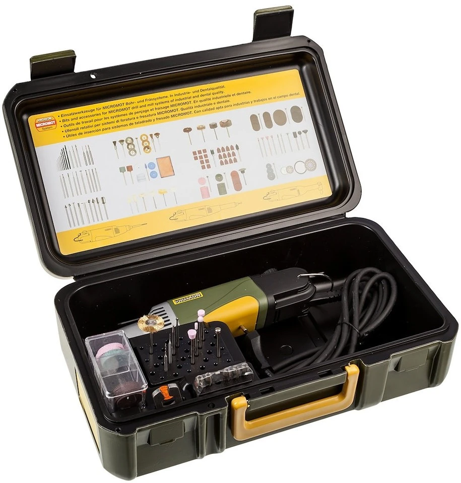 Lieferumfang:1 x Industrie-Bohrschleifer Proxxon IBS/E34 x Einsatzwerkzeug Proxxon1 x Kunststoffkoffer Proxxon