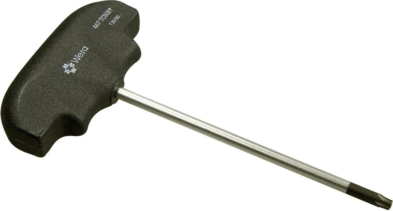 Zahlreiche Schrauben an der Rohloff Speedhub oder ihrem Zubehör haben einen Torx T20 Kopf. Um diesen nicht zu beschädigen, muss der Schlüssel mit ausreichend Druck in den Torx-Einsatz gedrückt werden. Dies kann nur mit einem T-Griff-Schlüssel sicher gewährleistet werden. Bei Verwendung anderer Werkzeuge (z. B. L-Schlüssel) können die Schraubenköpfe beschädigt werden. Dieser handliche Torx T20 Schraubendreher mit T-Griff ist ein qualitativ hochwertiges Werkzeug von der Firma Wera.