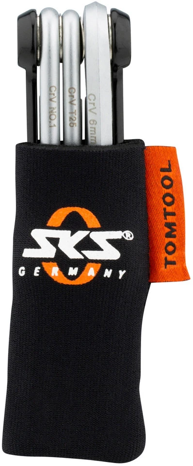 Das Germany Set von SKS bietet Dir alles, was Du unterwegs an Werkzeug brauchst: Eine Minipumpe, ein Multitool und einen Reifenheber.