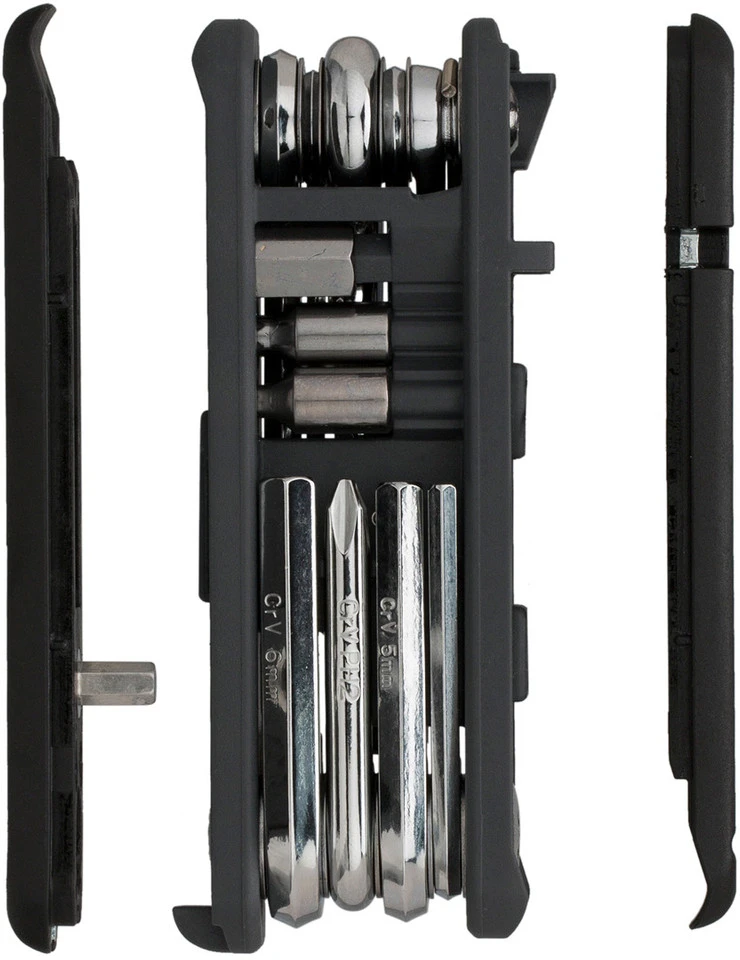 Technische Daten:Material Körper:Fiberglas-CompositeMaterial Werkzeug:Chrom-VanadiumGröße (L x B x H):90 x 40 x 27 mmFunktionen:21Funktionen:KreuzschlitzschraubendreherInnensechskant: 2, 2,5, 3, 4 (2x), 5 und 6 mmTorx: T15, T25 und T30Bit-Erweiterung: 5 mm auf 8 mm InnensechskantSpeichenschlüssel: 14G, 15GKettennieter (bis 12-fach), nicht kompatibel mit 11-fach Campagnolo Hollow Pin KettenKettenfixierhaken2 ReifenheberPresta-VentilwerkzeugFeatures:Reifenheber in die Seiten des Werkzeugkörpers integriertHerstellernummer:TT2573B