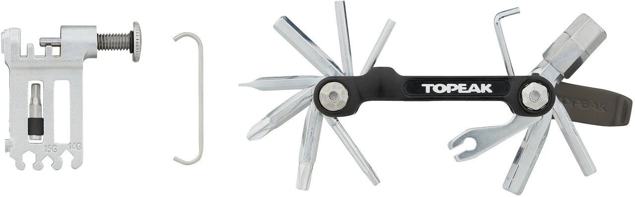 Die Ninja Master+ ToolBox T20 von Topeak enthält mit dem Mini 20 Pro Multitool alle Werkzeuge, die Du unterwegs brauchst – sogar wenn Dir die Kette gerissen ist. Das praktische Multitool-Case lässt sich überall und auch an kleinen Rahmen mit wenig Platz montieren.